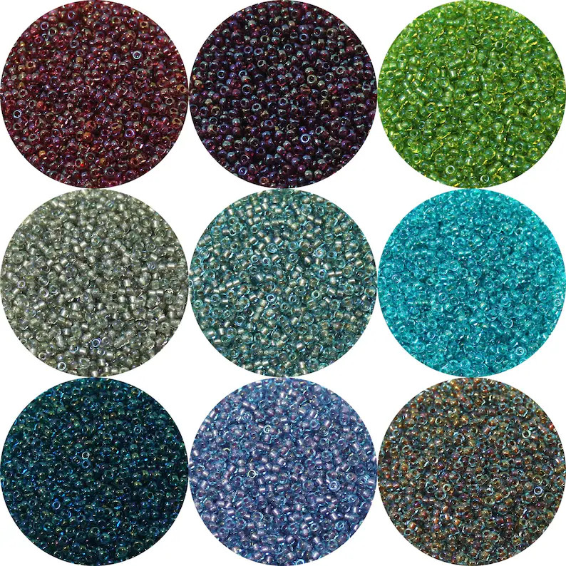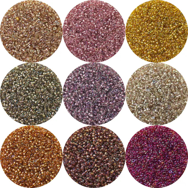 Wonderful Miyuki Japanese shimmer lined AB seed beads. Available in 11/0. These are also called the “Fancy Lined” 322 series.