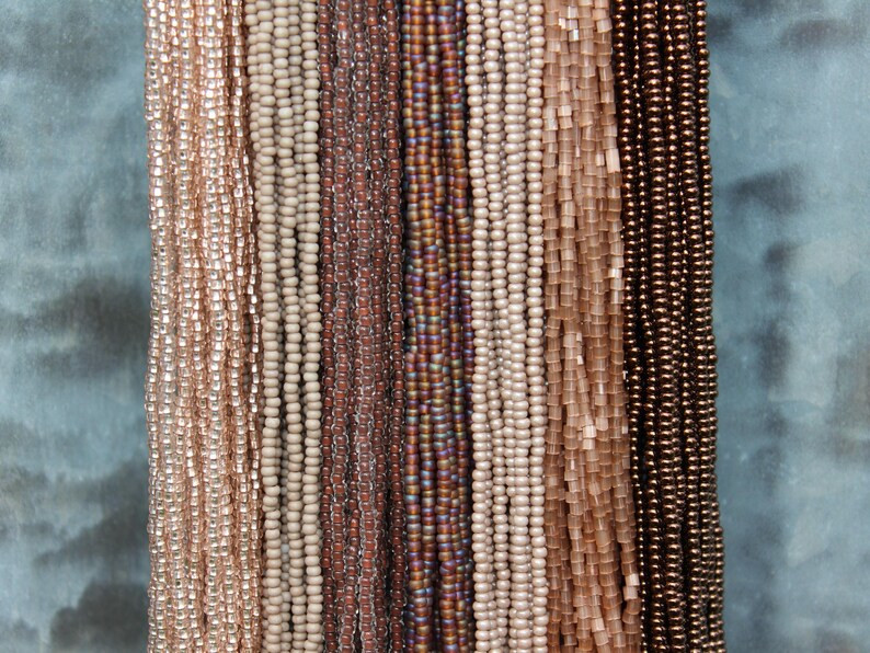 This is a gorgeous collection of Pantone’s 2025 Color Of The Year, Mocha Mousse, that blends together perfectly. They are all size 11/0 Czech Preciosa Seed Beads, including 1 hank of 11/0 Two Cuts.