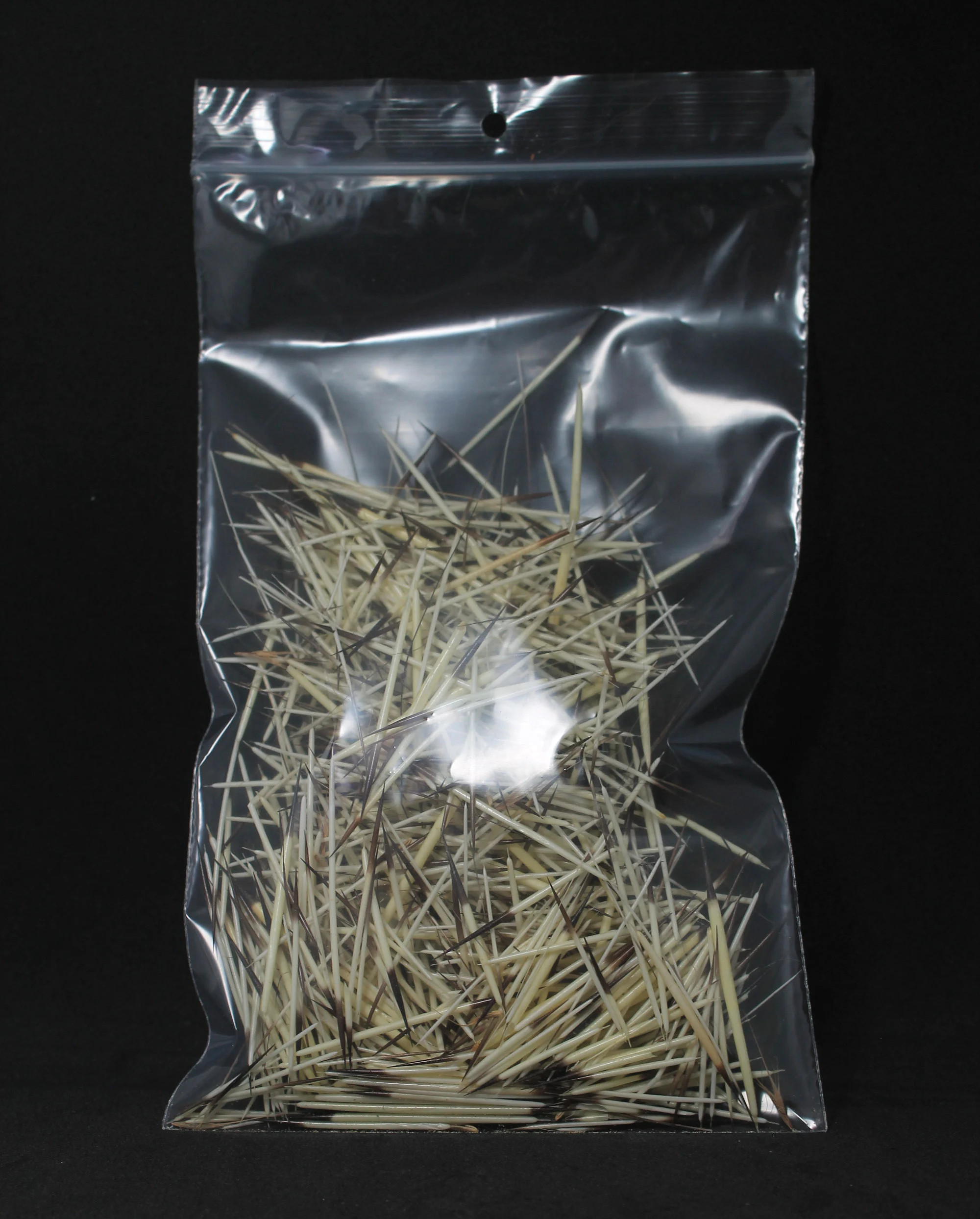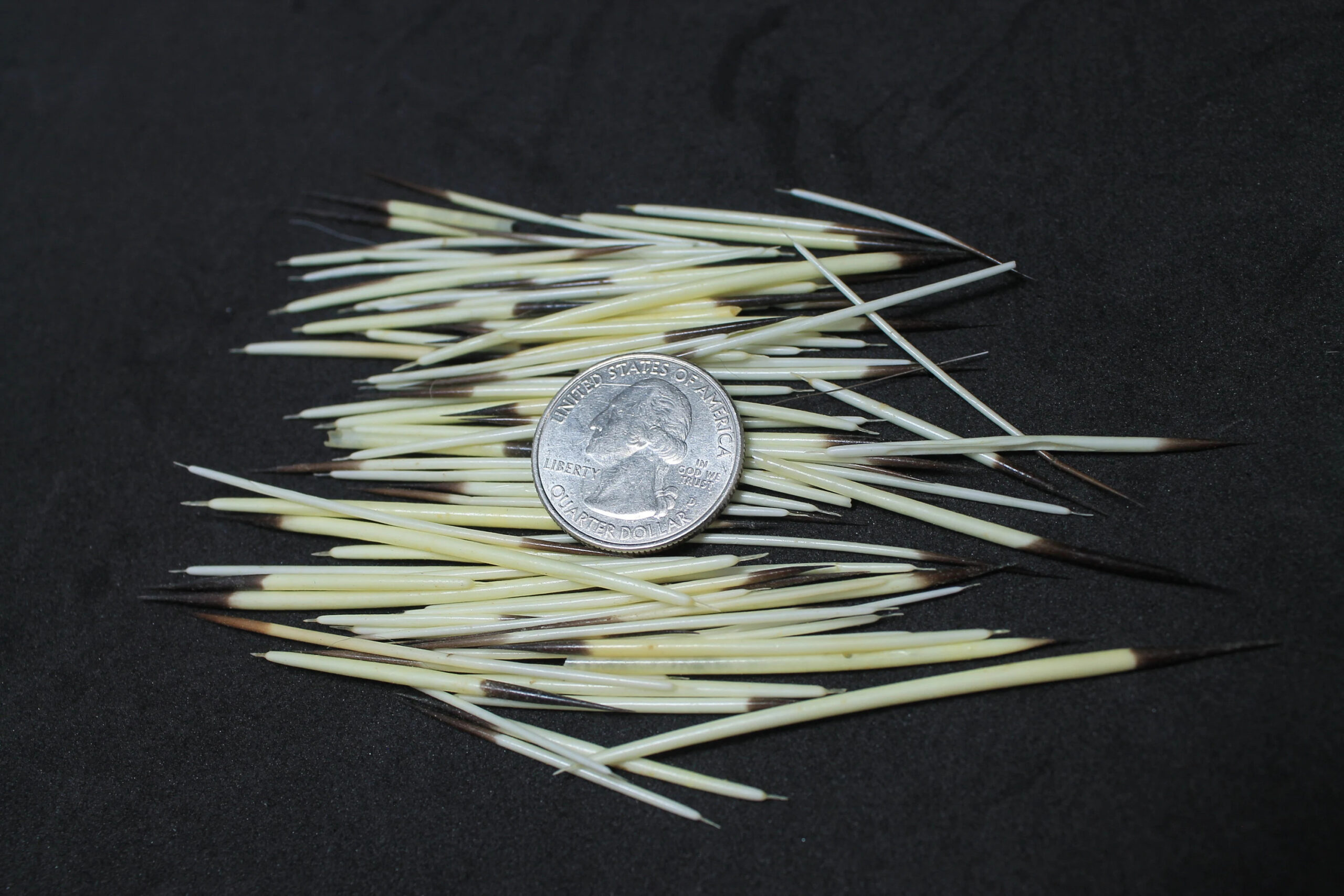 We weigh out 6 grams of Porcupine Quills. You get all sizes of quills. These are unsorted. Most are usable. Porcupine quills can be used in fringe earrings or necklaces, or can be used in Native American style jewelry.