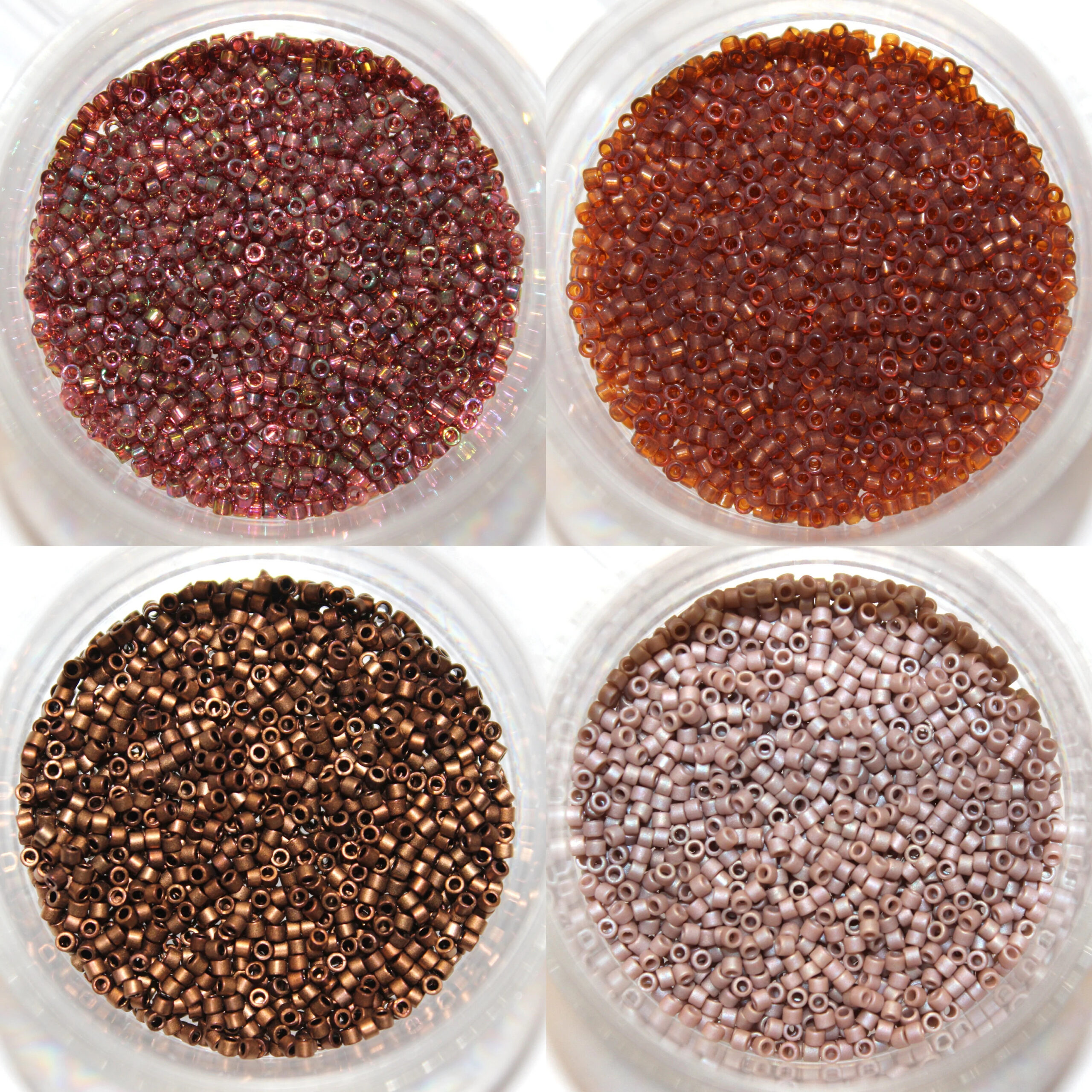 This is a wonderful mix of Rust colors with complimentary Taupe Miyuki Delica beads! Available in 11/0. These beads measure 1.6mmx1.3mm with a 0.8mm hole. In this pack you will receive 12 colors, 8 grams of each color.