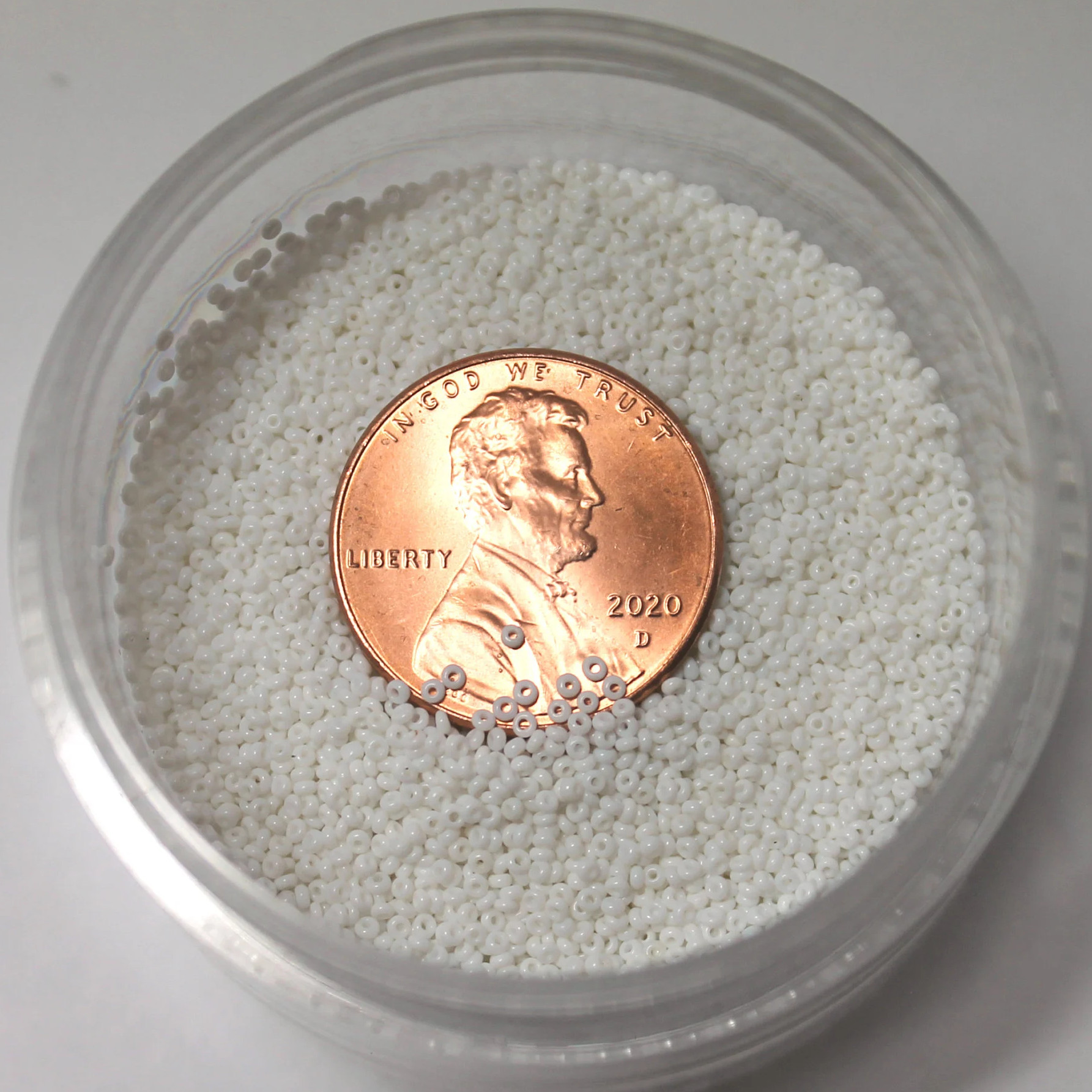 Vintage Micro Seed Beads, 1.0mm 20/0 in Opaque White. Size 20/0 is approximately 40 beads per inch. These are extremely small! These beads are sold in a 3 inch tube which is 15 grams, about 13,650 beads.